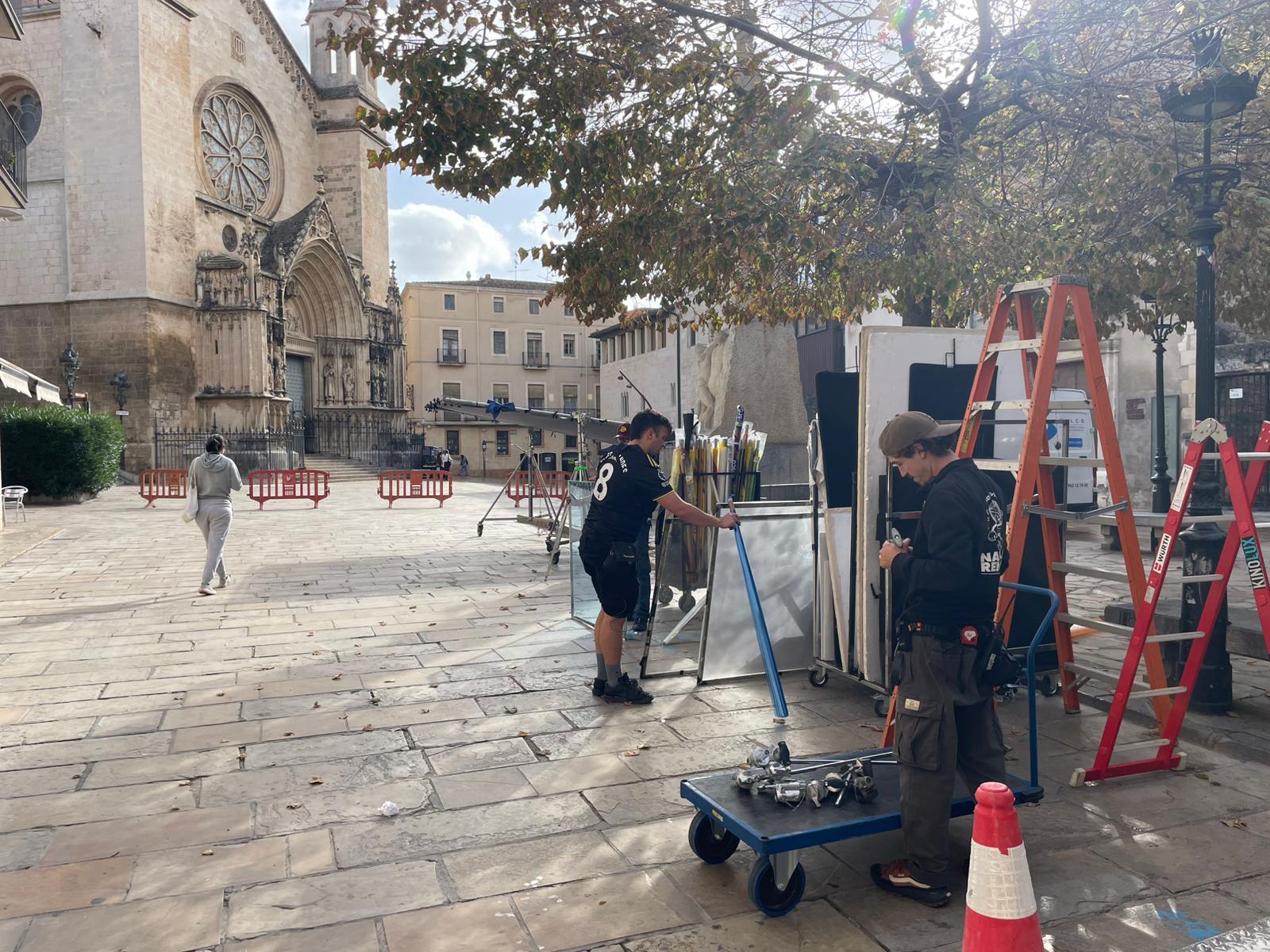 Aquest matí de dijous la Basílica de Santa Maria i la Plaça Jaume I han esdevingut un set de rodatge.