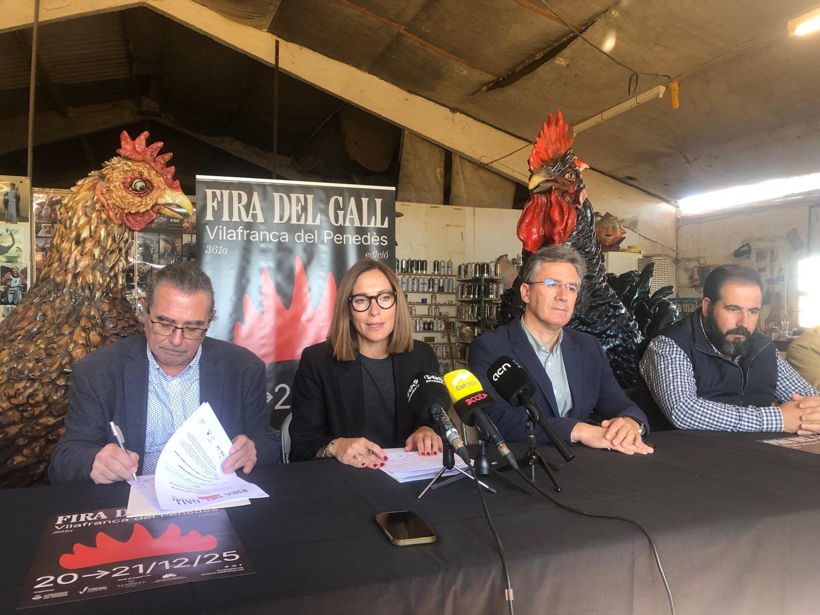 Aquest dimarts al migdia ha tingut lloc al taller de l’escultora Dolors Sans la roda de premsa de presentació de l’edició 361 de la Fira del Gall de Vilafranca, que se celebrarà el cap de setmana del 20 i 21 de desembre al parc de Sant Julià.