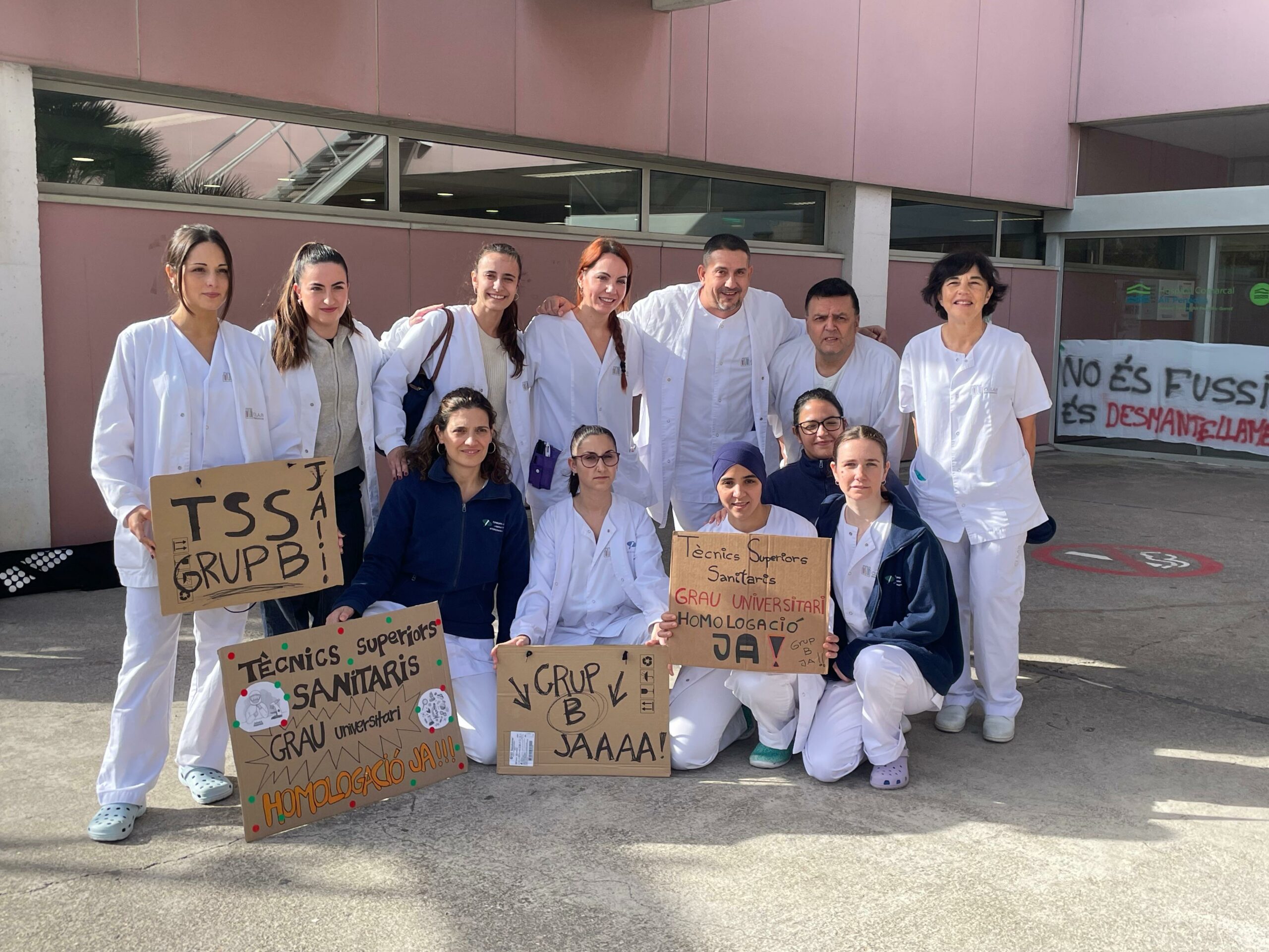 Aquest dijous al migdia una desena de tècnics superiors sanitaris de Clilab s’han concentrat a l’entrada principal de l’Hospital de Vilafranca per a reclamar d’una banda l’homologació del seu títol i que s’equipari a la de la resta d’Europa i, per altra banda, que es reconegui completament la seva categoria professional. Ho explica un dels treballadors, el Fran Garrote.