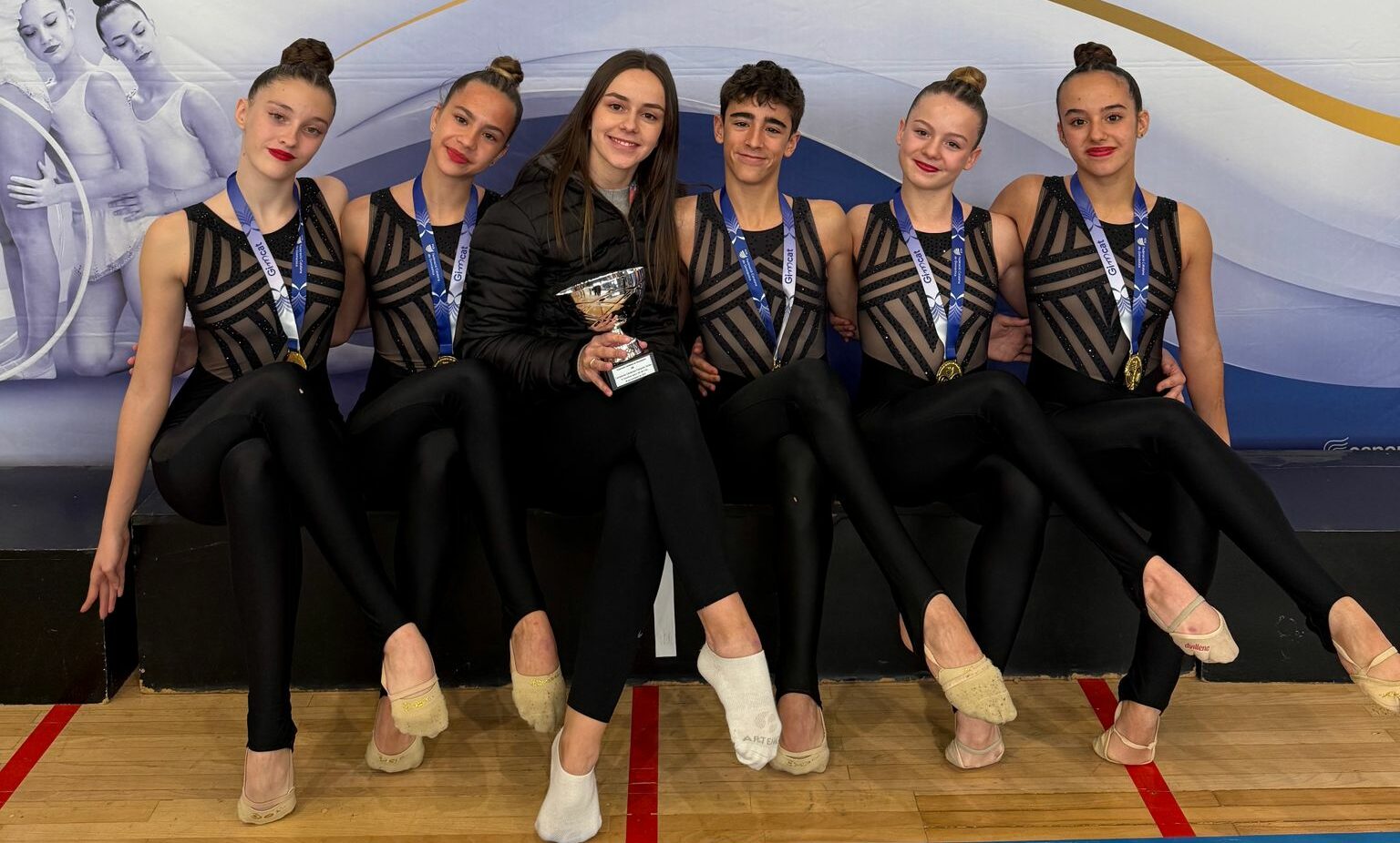 El conjunt júnior nivell 5-6, integrat pel Víctor Sierra, Aina Díaz, Esther Andreu, Alma Márquez i Carla Rovira, va aconseguir pujar al punt més alt del podi, proclamant-se campió de Catalunya. Amb aquest resultat, l’equip tanca una temporada immillorable, en què ha assolit la primera posició en les tres fases del campionat.