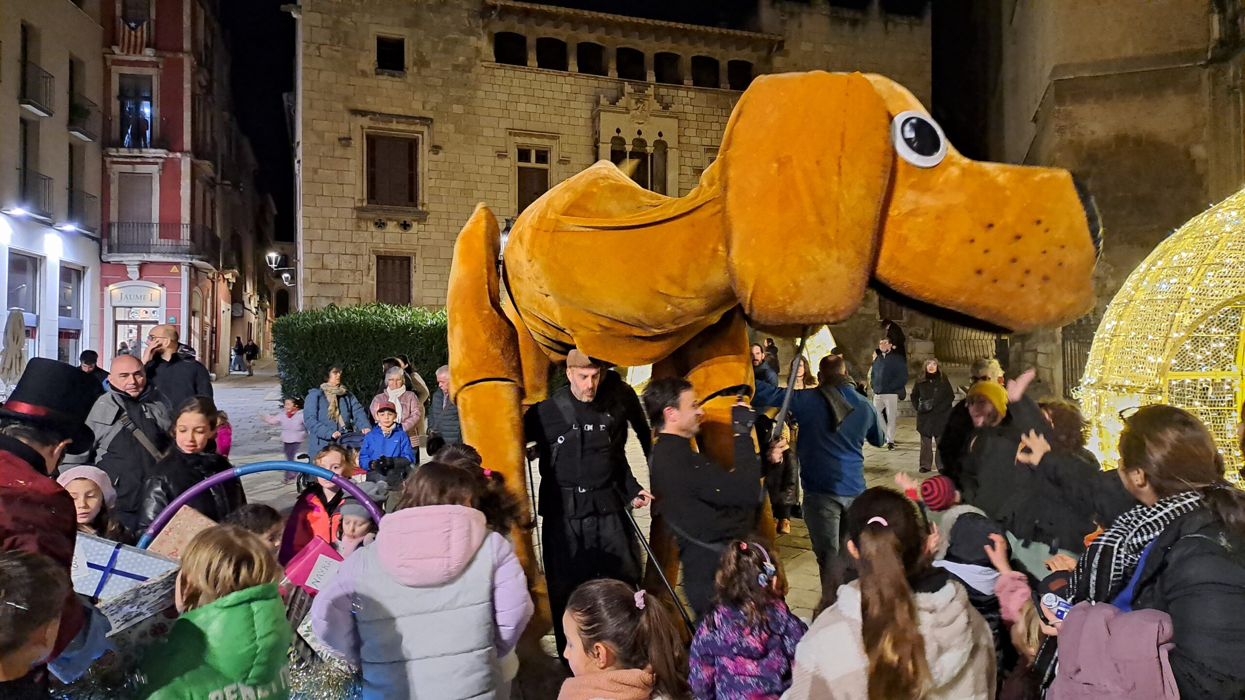 Aquest dimarts, els carrers del centre de Vilafranca acollien una nova mostra d’animació itinerant dins les festes de Nadal. En aquest cas, el que s’oferia era l’espectacle ‘El petit Lilo’, on un gos gegant en forma de titella va anar avançant mentre interactuava amb nens i famílies.
