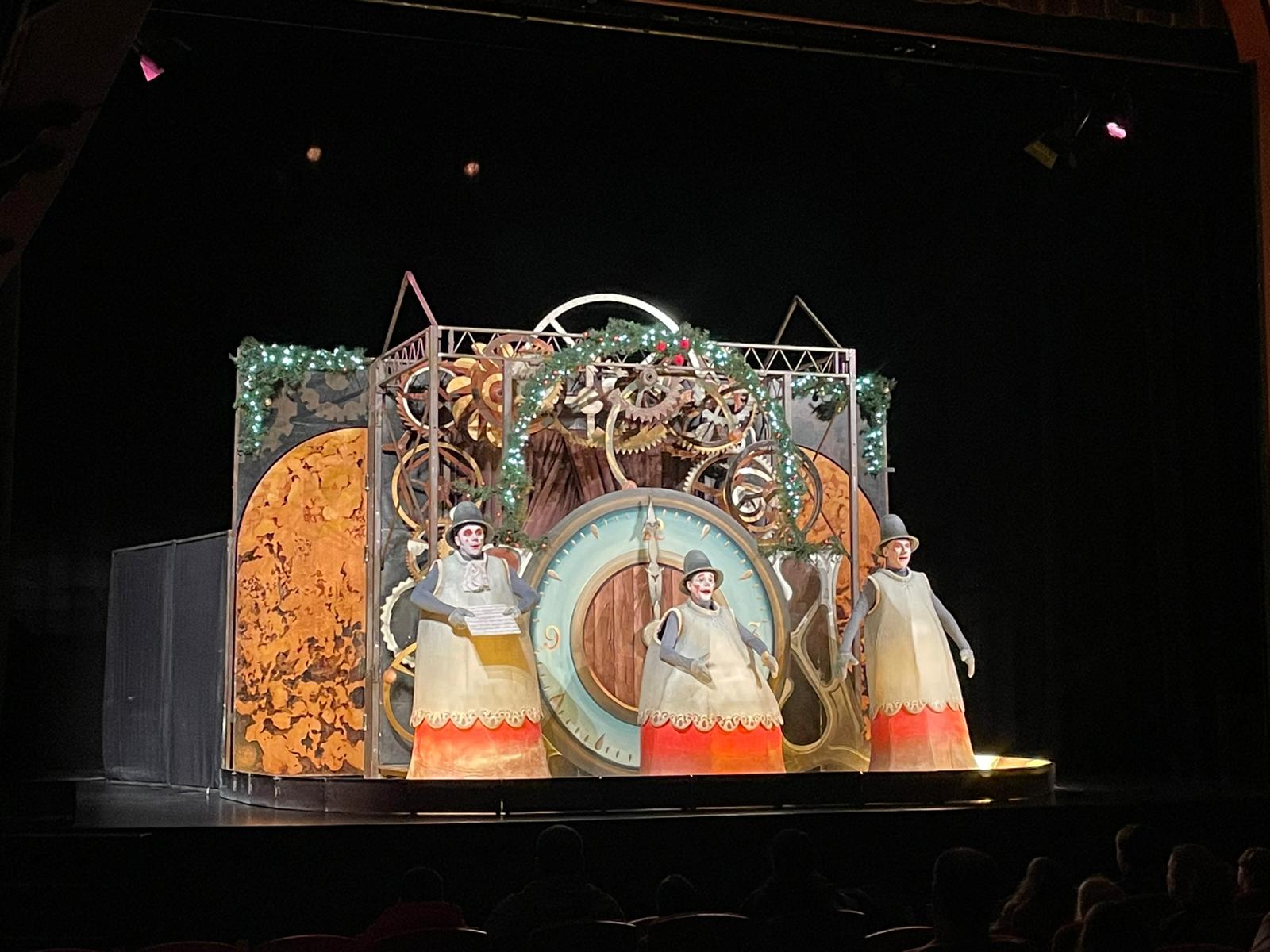 Amb un rellotge gegant que es posa en marxa i els engranatges que comencen a girar, apareixen, a ritme de carilló, figures que imiten els ninots dels rellotges i donen vida a una proposta de teatre de carrer per a tots els públics.