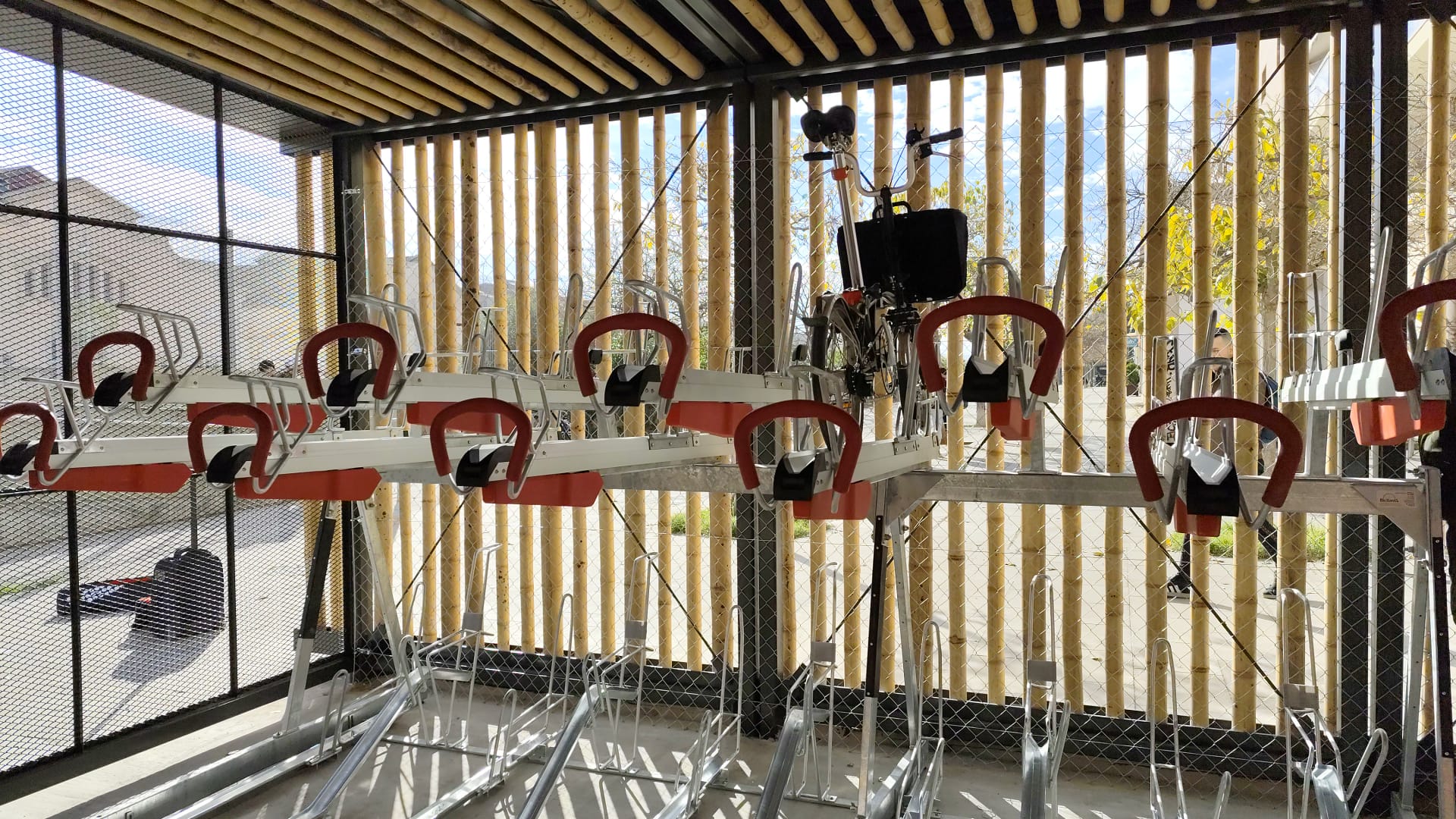 L’estructura inclou un sistema d’aparcament de dues plantes amb 40 places per a bicicletes, així com 10 places per a patinets amb suports específics.
