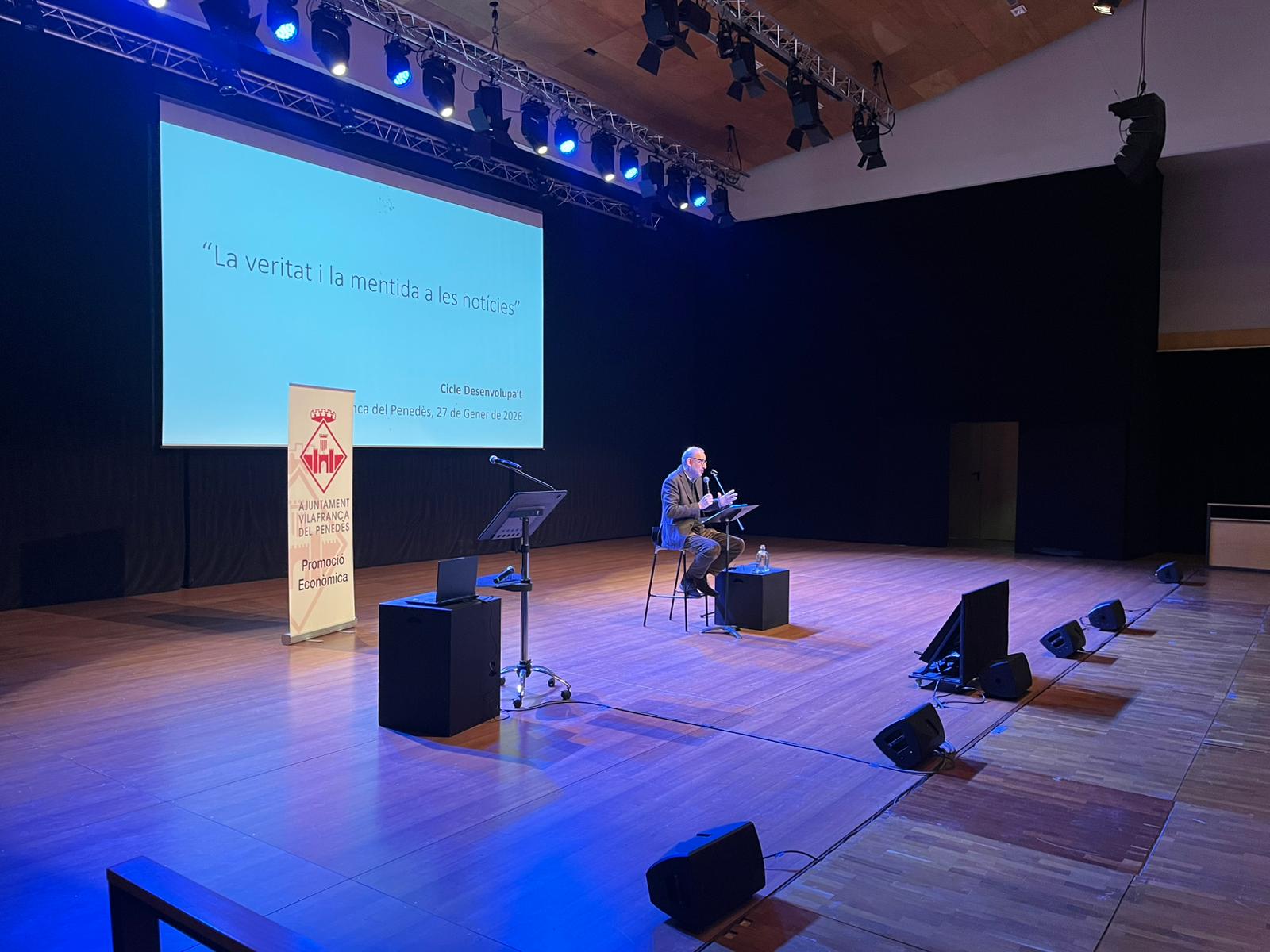 El periodista ha ofert aquest dimecres a l’Auditori M. Rosa Juncosa la conferència ‘Fes una dieta informativa que et faci profit’, en el marc del programa Desenvolupa’t, impulsat pel Servei de Promoció Econòmica de l’Ajuntament de Vilafranca.