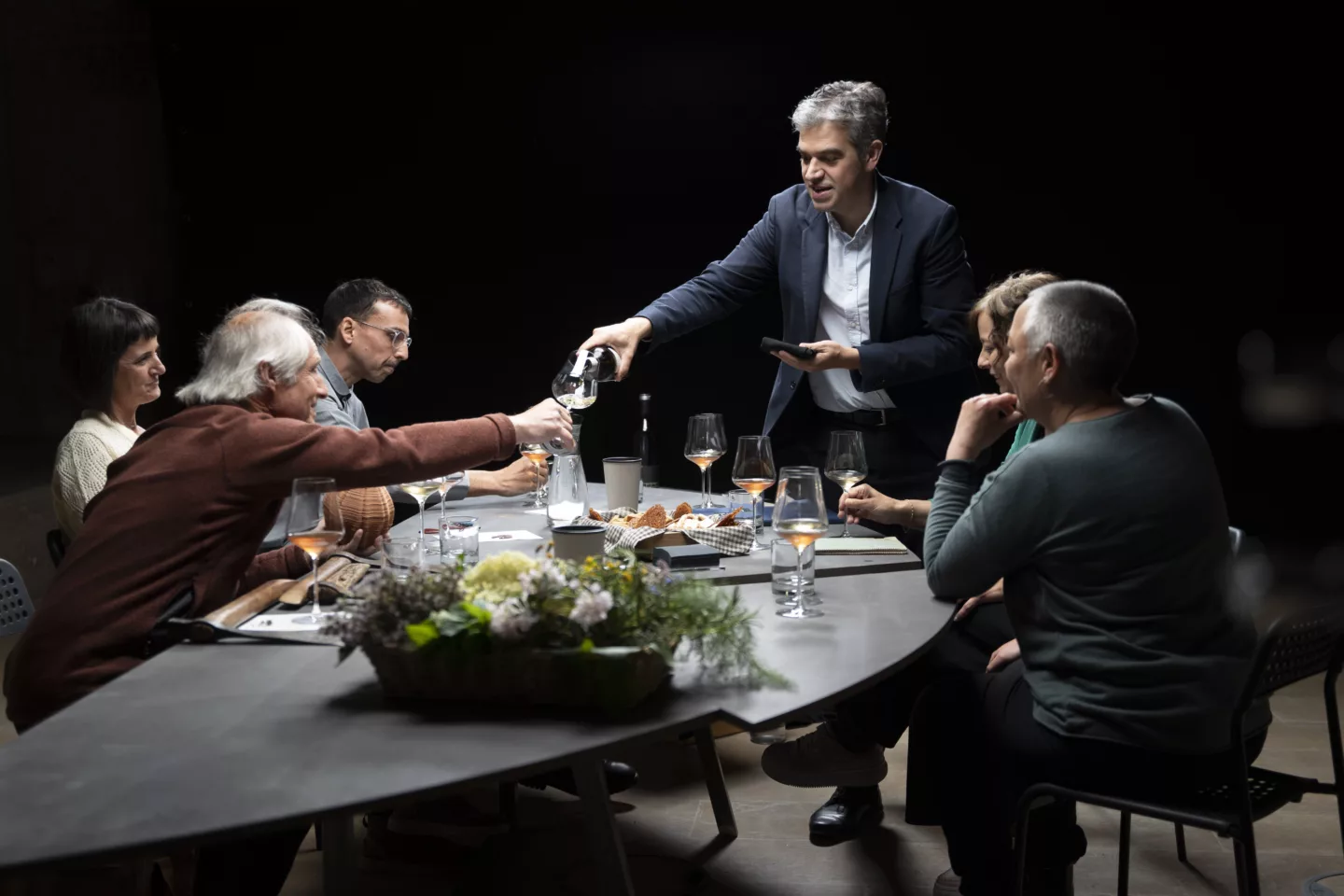 La mostra, ubicada a la Capella de Sant Pelegrí, ha ofert una mirada contemporània als oficis que fan possible les ampolles de vi a través d’una instal·lació on s’han barrejat elements sonors, humans i objectes. També s’han posat en valor els oficis tradicionals i artesans encara vigents que permeten mantenir debats sobre el futur del sector i que conviuen amb d’altres de nous.