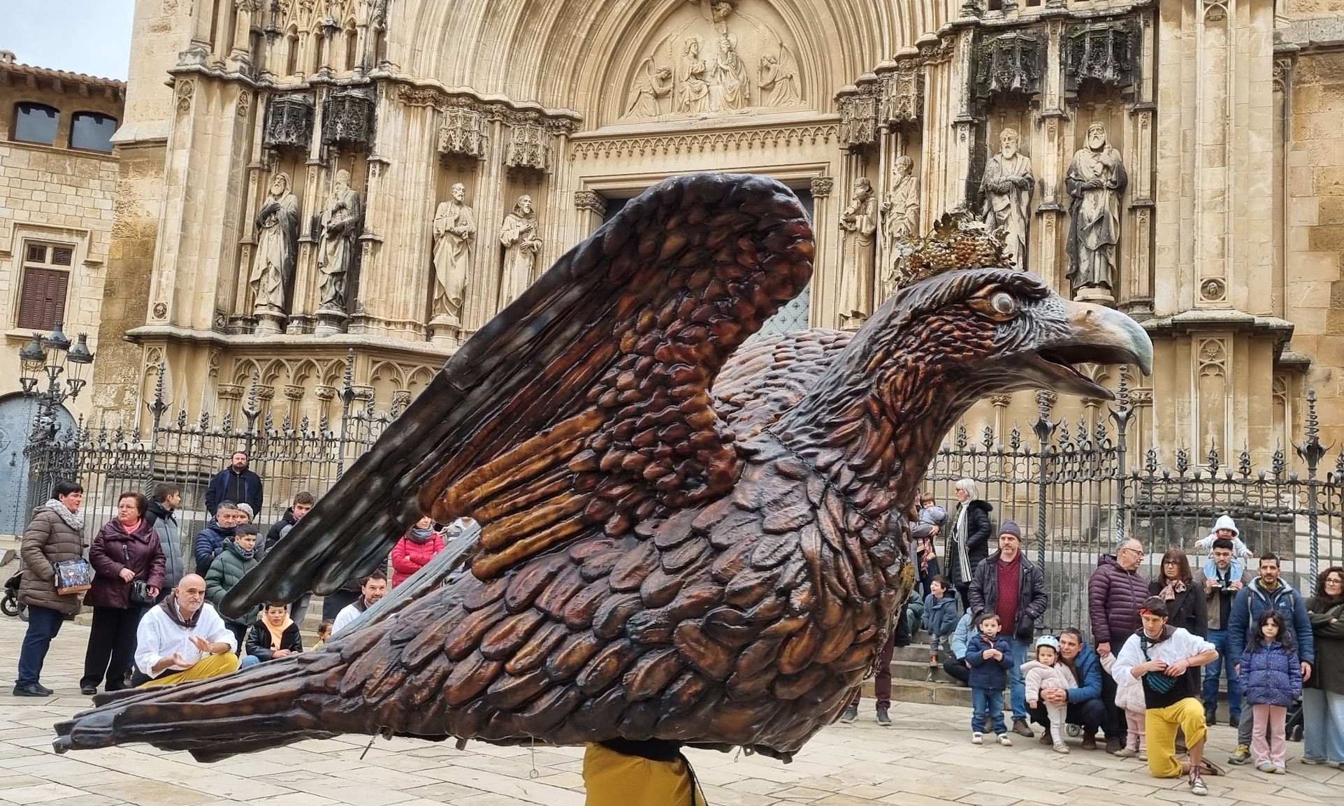 Tot plegat per substituir l’antiga, datada de 1926, a causa del desgast que el pas del temps va exercir sobre ella. Així doncs, Sans va elaborar el disseny que coneixem avui, una àliga amb les ales obertes ambientada en l’antiga en termes de proporcions i posició. Una proposta que va obtenir el vistiplau de l’Ajuntament desencadenant l’estrena de la figura per primera vegada la Festa Major de l’any 2003, sortint set anys fins al 2010.