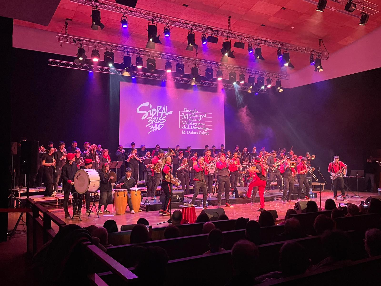 Un auditori ple de gom a gom acull el concert de l’Escola de Música i la Sidral Brass Band