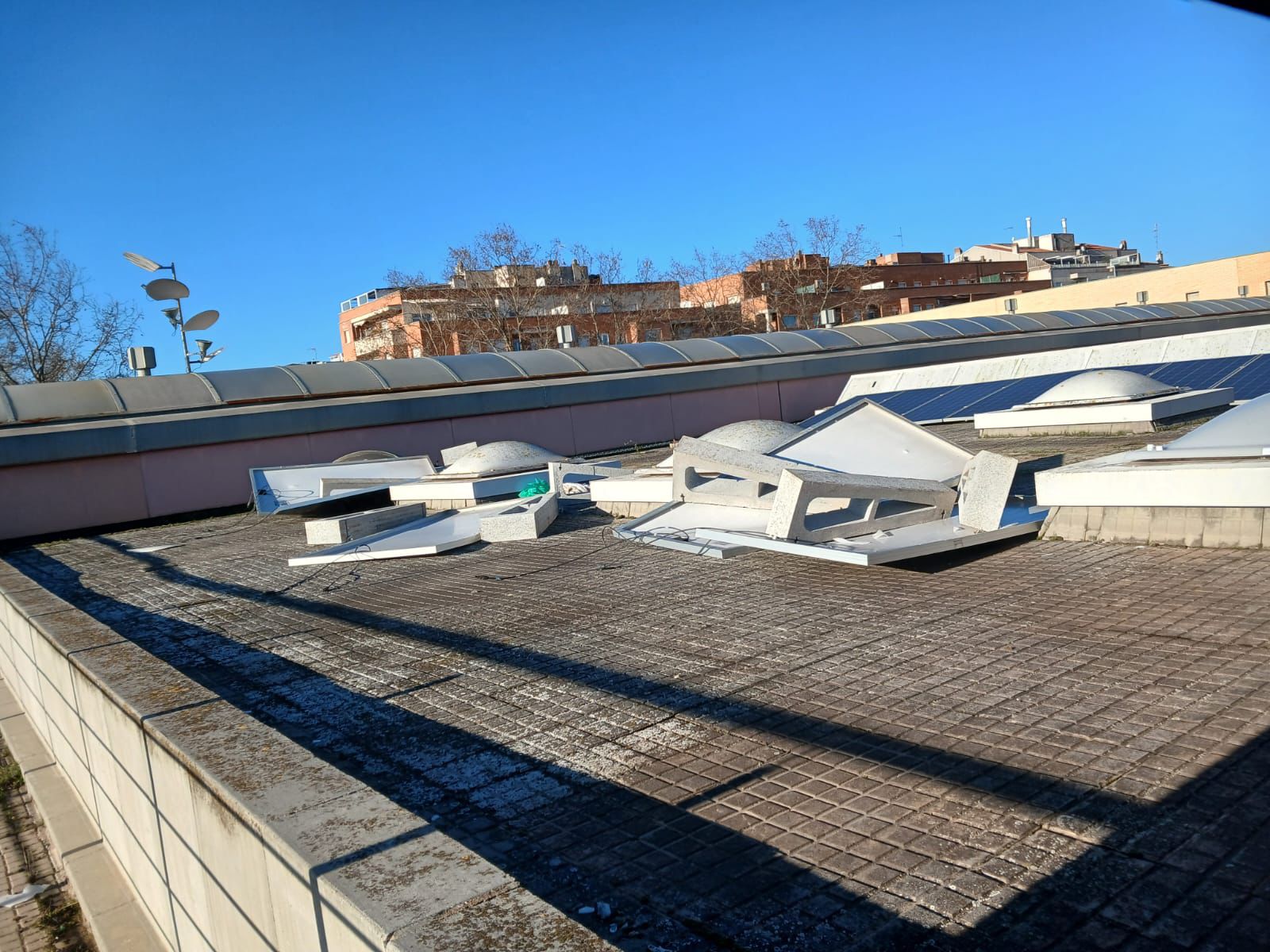 Despreniment de plaques solars i claraboies i la caiguda d’un sostre de les consultes externes, al costat d’oncologia, amb el trasllat dels pacients d’oncologia a una altre espai